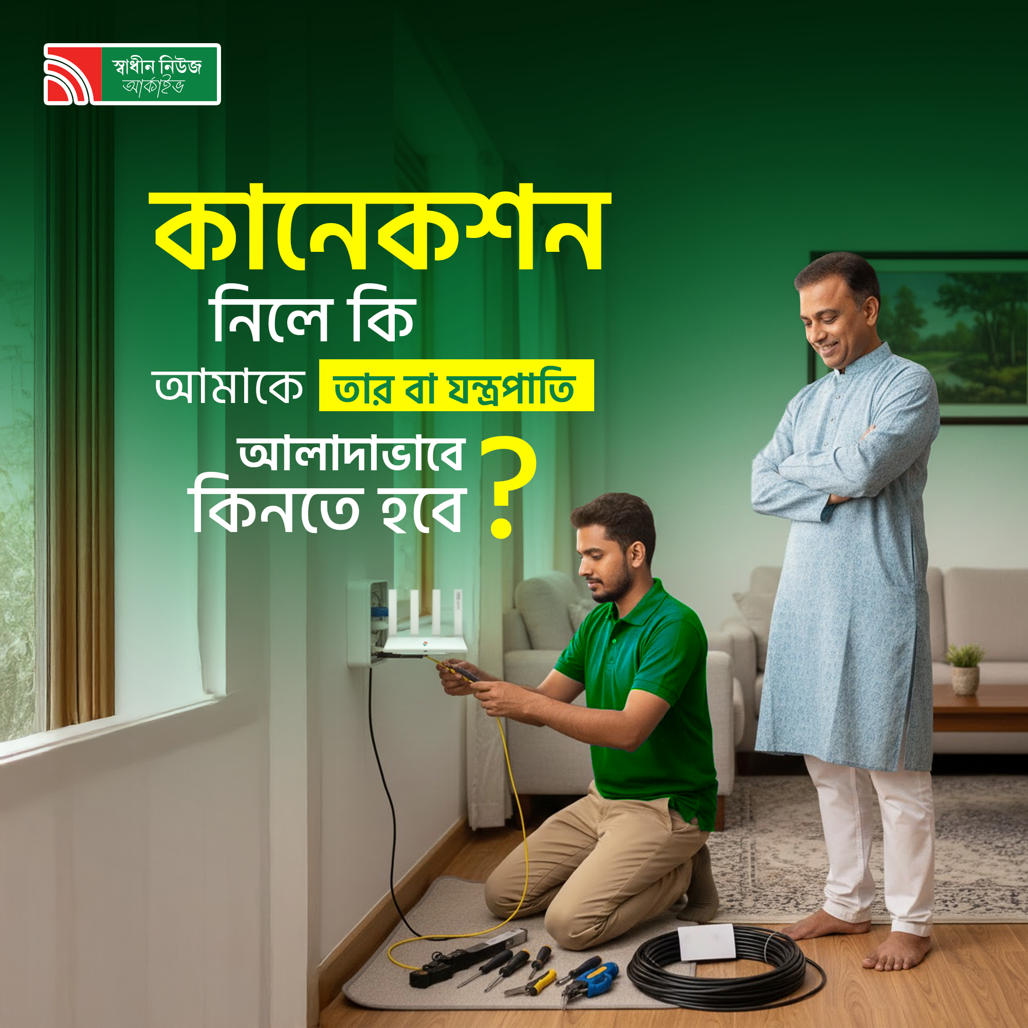 কানেকশন নিলে কি আমাকে তার বা যন্ত্রপাতি আলাদাভাবে কিনতে হবে?