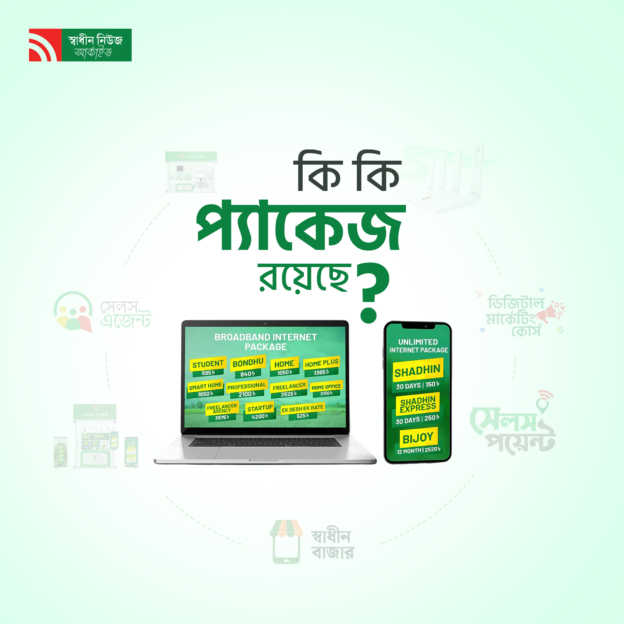 স্বাধীন-এর ইন্টারনেট প্যাকেজসমূহ: আপনার প্রয়োজন অনুযায়ী